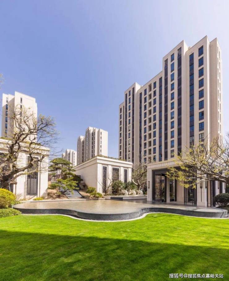水景、雕塑、草坪、绿植打造生态底色,营造宜居的社区微环境。三棵100多年树龄的朴树各具造型和姿态,松、竹、梅“岁寒三友”,铜鹤,构筑独特意境。风雨连廊取“框景”手法,质感显而易见,所付出的成本更是无需赘述。