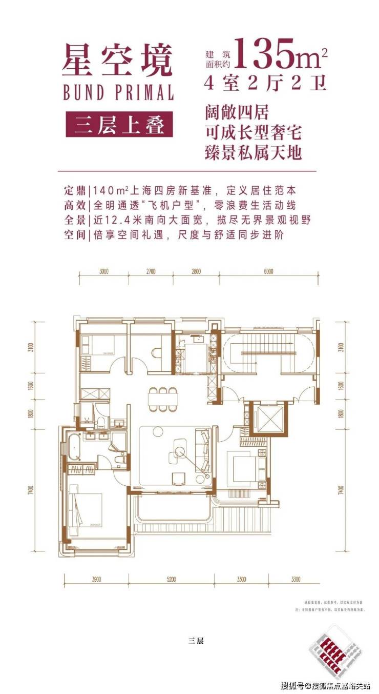 上叠(星空境):建面约135㎡,可成长型空间,适配家庭结构变化。