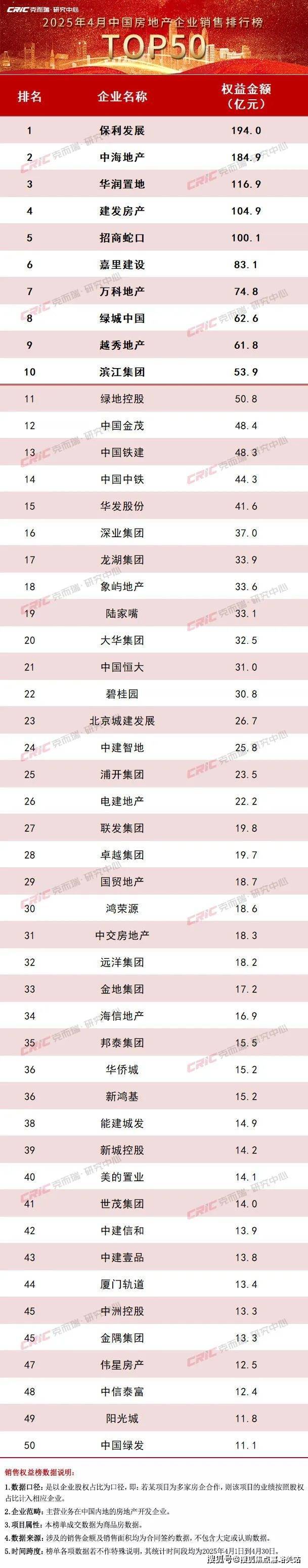 附:《2025年1-4月中国房地产企业销售TOP100排行榜》