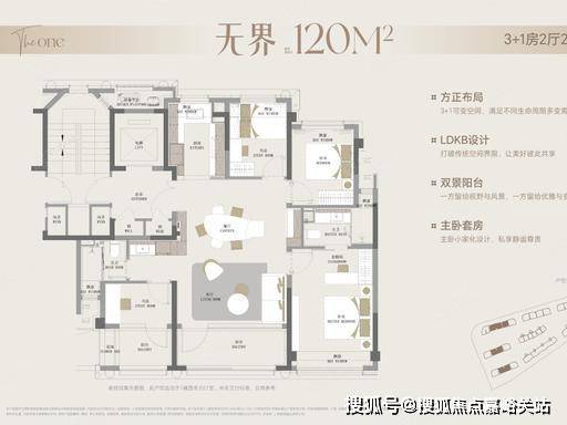 120-125㎡ 三房两厅两卫:总价约 879-980 万,LDKB 一体化、双阳台、独立玄关,空间开阔,得房率约 85%-90%。
