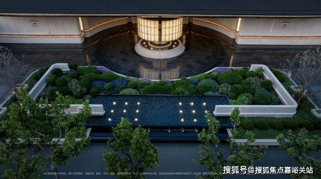 社区景观方面,项目运用室内手法室外化设计构想,将垂直景墙、悬浮观景台与叠水景观立体穿插,形成情随境转的沉浸式体验,自然元素渗透进室内,并与室内空间动态互动。