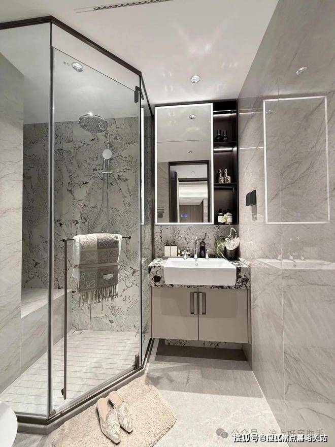 豪华的套房设计,北侧卫浴飘窗+南向床边双飘窗的设计,更是把这个空间的视野和收纳空间延展开来,尺度感真的很惊人。