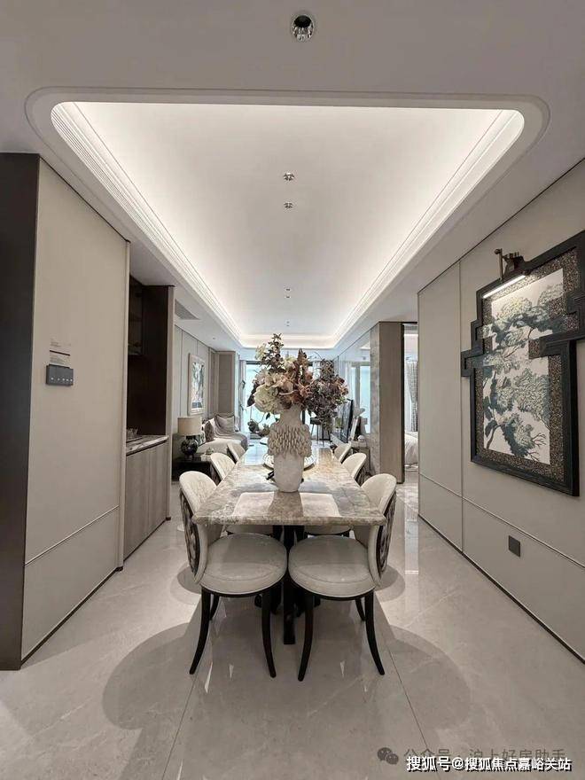 不同于寻常项目进门后直接进入小区,招商序打造约4.5m高的迎宾楼,玄关左右两侧均可通行,且各建有一处会客区域,给到了业主更多元和更具仪式感的归家场景。