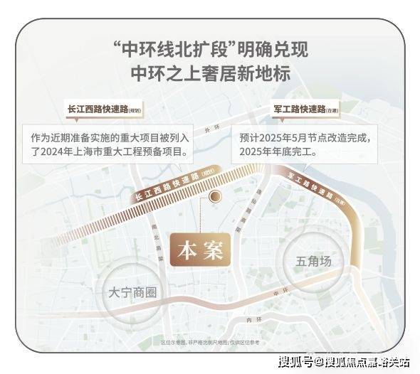 中环线北扩段明确兑现,军工路快速路25年开工,长江西路快速路列入上海市重大工程清单预备项目,快速链通城心, 随着中环线北扩段的政策明确,淞南将正式进入中环时间。未来经逸仙高架,进入南北高架、内环高架、中环高架,可快速链通南北上海;多维立体路网全面升级,未来区域价值再攀新高。