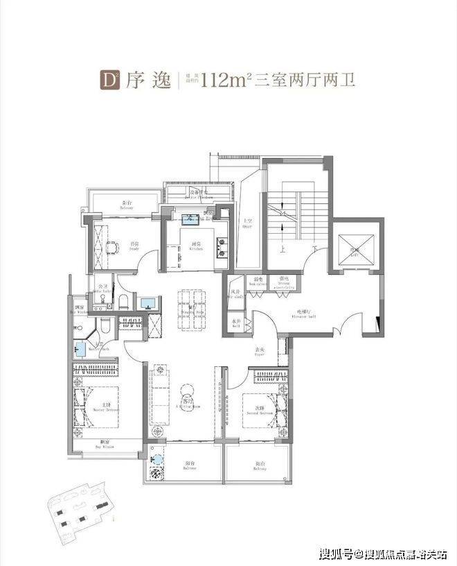 建面约114㎡3房2卫户型▼