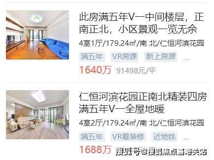 长宁天山标杆仁恒河滨城,挂牌单价已经出现9字头,最贵的时候成交价在13万以上。