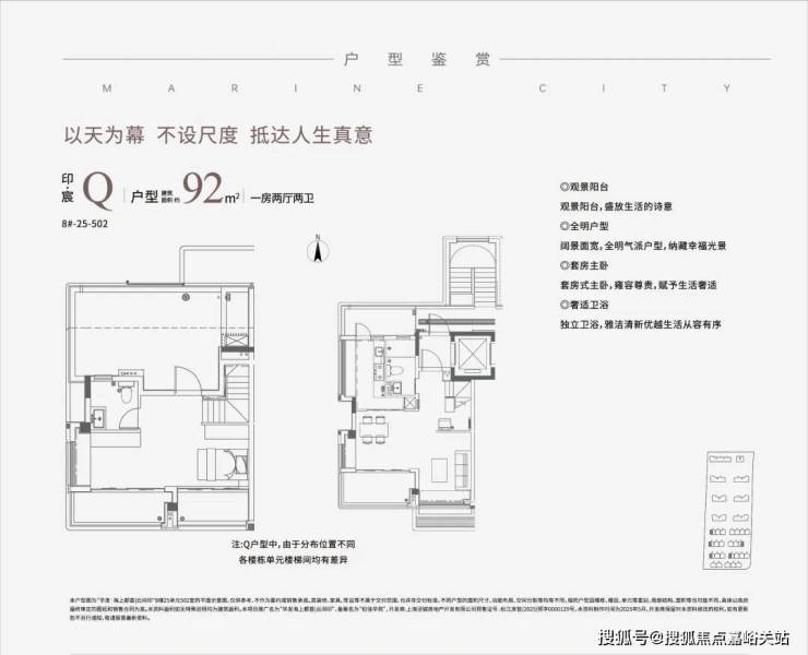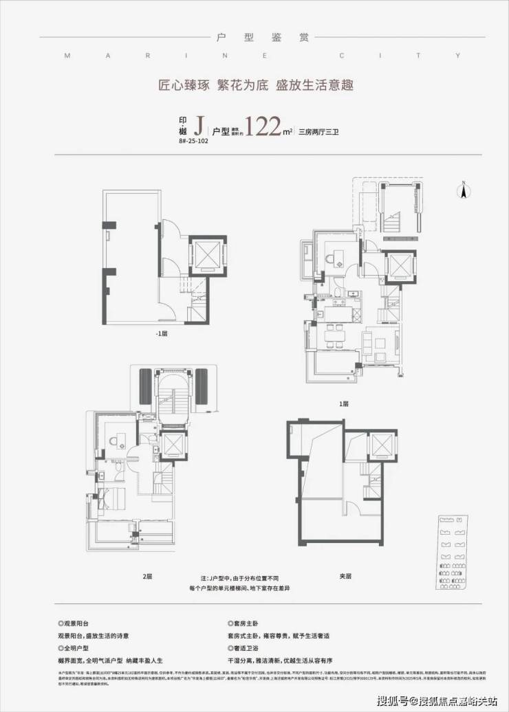 户型亮点:建面约 105-168㎡三 / 四房,主力 143㎡户型打造约 7.8 米横厅 + 270° 环幕观海阳台,主卧套房配独立更衣间与瞰海飘窗