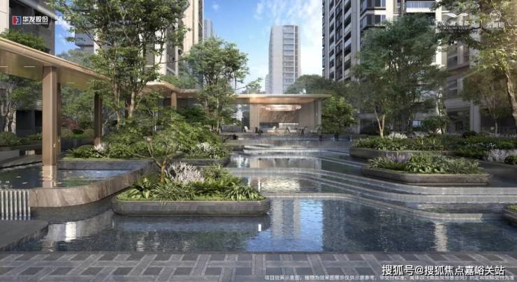 项目景观由 朗道国际团队打造!灵感来自松江通波塘的水系,将 海派的水韵和自然美学融入其中