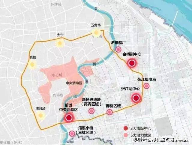 根据规划,将高标准推进前滩中央活动区、张江和金桥副中心三个市级公共中心区建设,挖掘沿线五大潜力地区,形成“3+5”中环集聚发展带。
