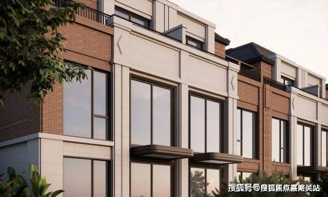 立面沿袭了嘉佩乐酒店的红砖元素,腰线运用深古铜色铝板,提取山墙、几何装饰等里弄建筑符号,以独具海派文化底蕴的红砖造艺,延续墅居经典三段式立面结构.