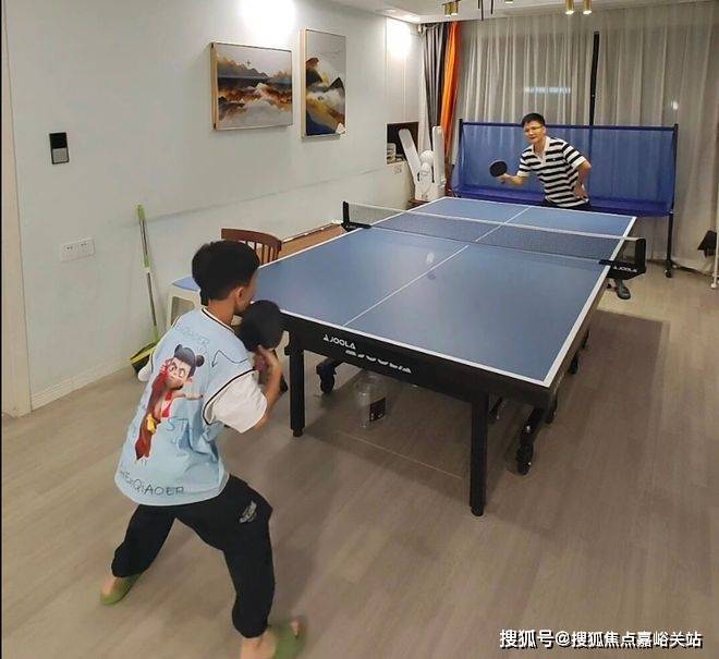②私人健身区:客厅中间没茶几时,铺上一张瑜伽垫,客厅秒变健身房,再无障碍物干扰;后来孩子打了,开始学乒乓球了,又可以在客厅中间摆一张球桌,不需为丢茶几而心痛。