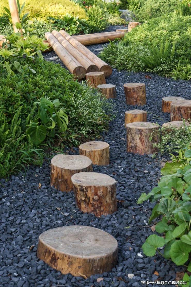 树桩小径与砾石地面勾勒自然肌理,蕨类与灌木层叠掩映,恰似柔粉画布上点缀的翠色笔触。于此漫步休憩,赏景品香,皆成诗意时光——或倚坐原木静观花雨,或携稚子追逐翩飞花瓣,尽享都市中的浪漫自然馈赠。