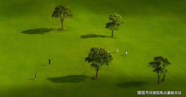 香樟、乌桕等高大乔木形成绿色天际线,中层红枫、紫薇增添季相变化,地被层铺植金叶石菖蒲、玉簪等彩叶植物。现代建筑在绿荫间若隐若现,实现"建筑隐于自然"的设计哲学。