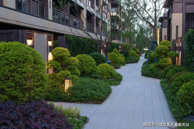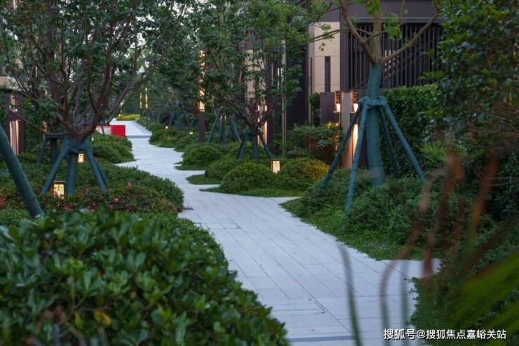 锦绣巷道蒲葵、芭蕉与彩叶草构成浓郁热带画卷,黑色壁灯夜间投射棕榈叶影,营造度假式休闲氛围;霜红巷道红叶石楠与无刺枸骨球冬季燃起火红色彩,春樱秋梅交替登场,呼应古典诗境;繁花巷道石制洗手钵与竹制水器静卧白砾石间,紫薇与苔藓营造枯山水意境,诠释“露地”精神;漫樱巷道龟甲冬青修剪成流云形态,与建筑立面线条对话,隐喻“云海绕宅”的东方哲思。