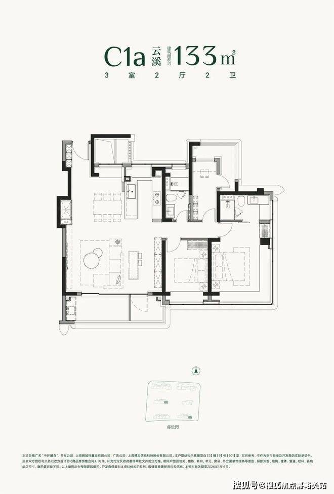 建面约133㎡3房:
