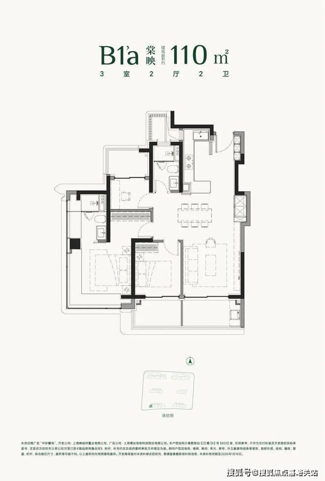 建面约110㎡3房户型:
