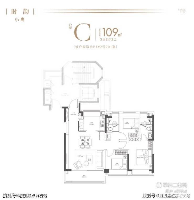 建面约109㎡3房(小高)
