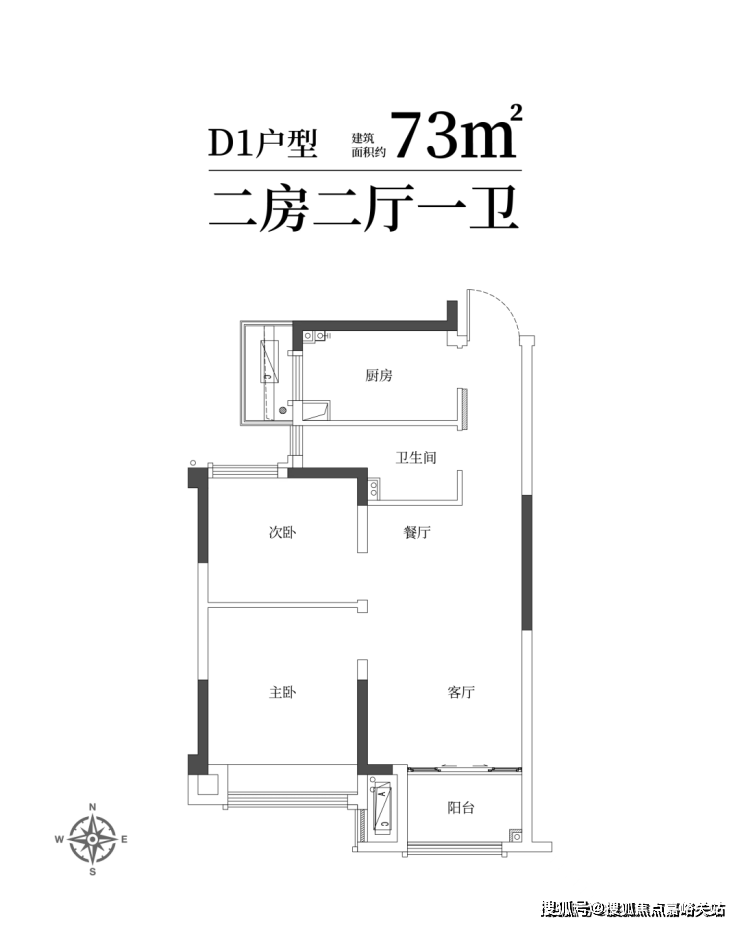 建筑面积约73㎡舒适两房一卫,年轻家庭的向往