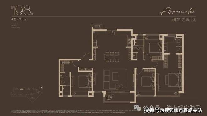 建面约198㎡4房户型,嘉定“收藏级”传世大宅!塔尖人士的挚爱之选!2梯2户的设计,子母双开门礼序入户,私密尊崇门厅,彰显尊崇生活仪式感。