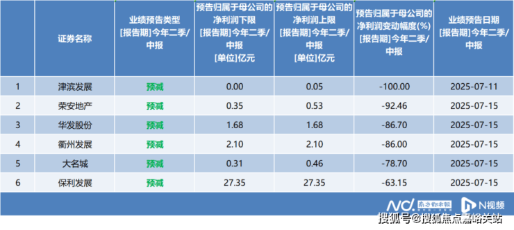 由此也可以看出,即便是站在盈利阵营里的幸存者,也难逃利润下滑的命运。除了保利发展之外,华发股份、荣安地产、大名城等房企今年上半年的归母净利润同比最高降幅预计都在60%以上。