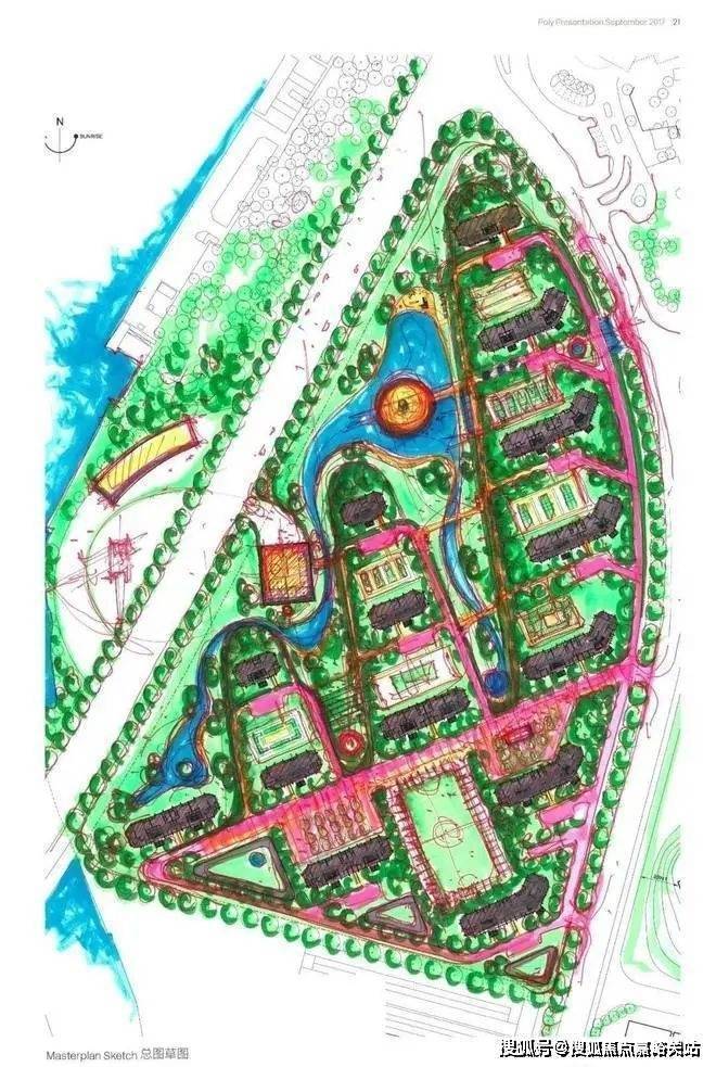 材质都是以大面积的玻璃为主,非常有利于充分采光,也能更好的欣赏江边风景。目前网上流传的项目设计草图确实不少,其中整个社区的绿化设计也是值得关注的: 除了项目整体的“滨江豪宅”的标签,社区内还强调了“公园”属性: