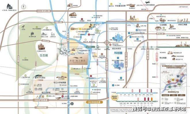 华发股份首入松江,携崭新“优+产品体系5.0”,为洞泾、乃至为松江带来目前区域内综合高品质作品。结合上海生态环境保护“十四五“规划,站位国际领先的可持续性项目规划,华发·海上都荟结合自身的独特聚合优势,在传统TOD规划之上,叠加不可复制的土地生态资源,向东链接G60科创走廊“以镇命名为区块”洞泾人工智能产业基地;向南直达亚洲大学城之一——松江大学城;北侧紧连上海陆面自然山林资源——佘山国家旅游度假区。板块高度贴合上海2035与松江2035发展关键节点,将区域打造成为“科创+文教+生态”交汇的核心新城模式,划立一个崭新的城市单元示范。