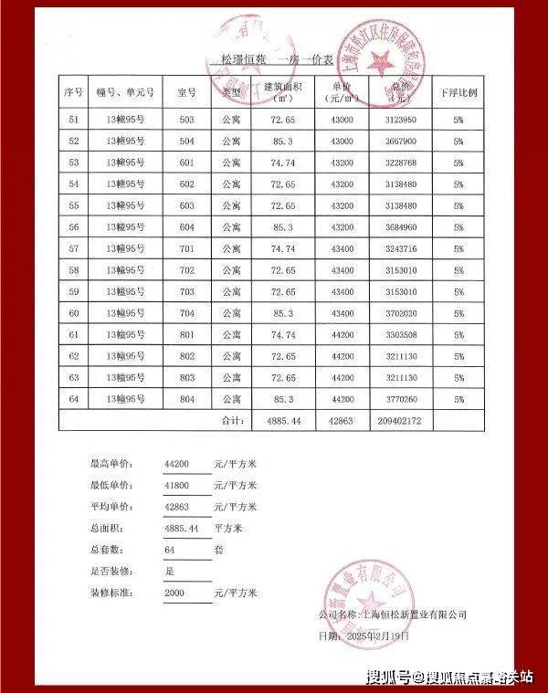 上期一房一价表如下: