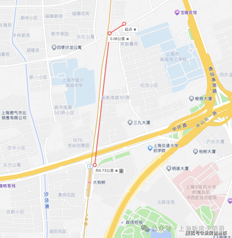 半径约7公里内、约30分钟车程可达到人民广场、北外滩等内环CBD区域。