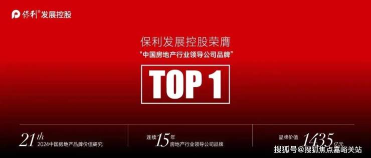 2024年9月,保利发展控股荣膺“中国房地产行业领导公司品牌”TOP1荣誉奖项,位居中国房地产品牌价值榜前列。