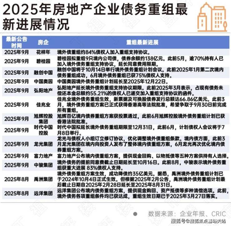 2021年至今房地产行业已进入调整期的第四年,截至2025年三季度已有不少房企已完成了全部的债务重组。