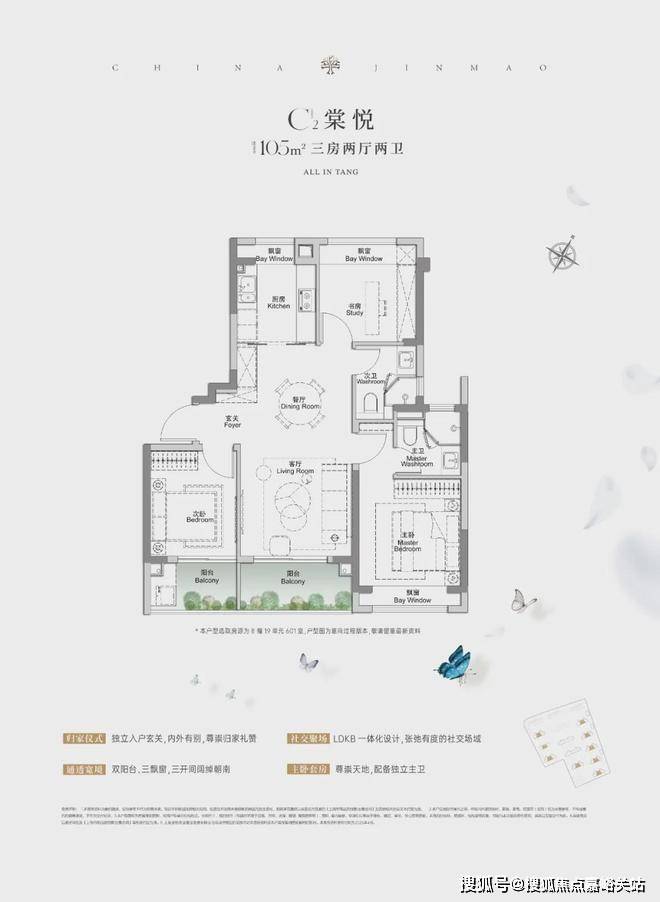 金茂棠前售楼处电话☎:400-833-6309【已认证】建面约85-117m²户型