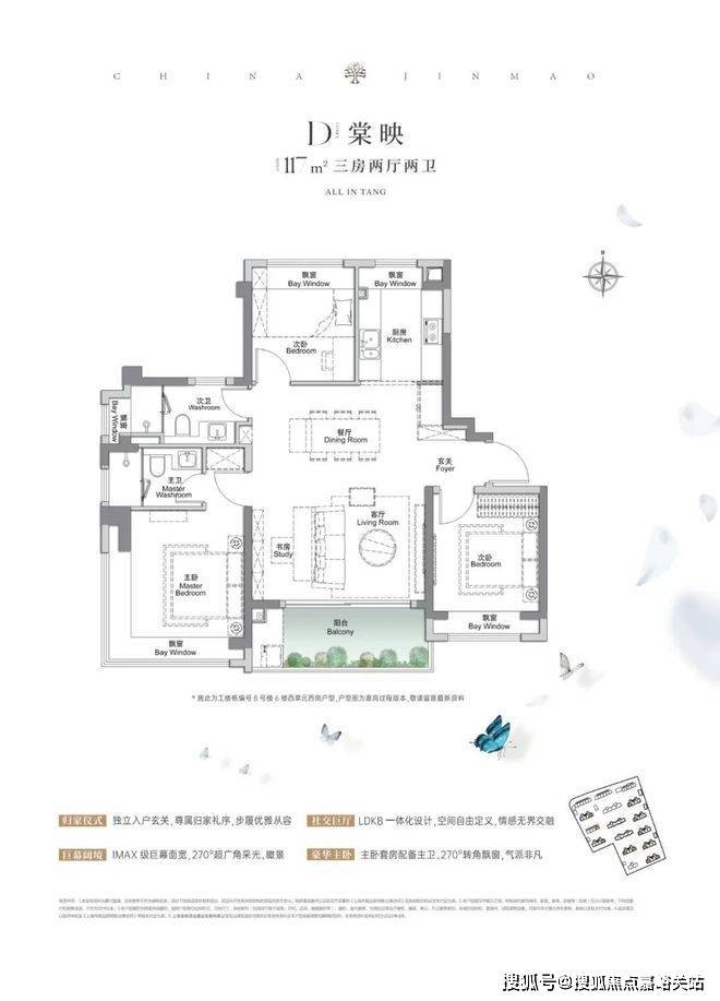 金茂棠前售楼处电话☎:400-856-9058☑️☑️建面约117㎡3房2厅2卫,做到了3+1开间朝 南+5个飘 窗+主卧套房设计+270°转角飘窗,所有的尺度都有进一步提升。金茂棠前售楼处电话☎:400-856-9058☑️☑️