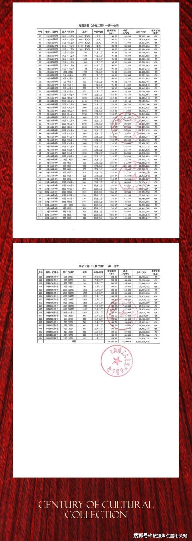 项目一房一价表▼
