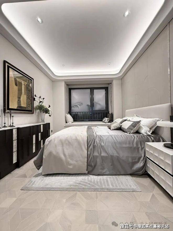 海上清和玺售楼处预约电话:400-8824-198主卧套房设计,皮革造型的床背景墙也是交付标准,台盆为唯宝(或同等档次)、龙头则为科勒(或同等档次)复古龙头,马桶为高仪智能马桶(或同等档次)。海上清和玺售楼处预约电话:400-8824-198