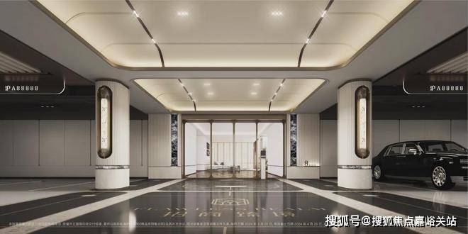 地库入户大堂公区打造,招商臻境同样也极尽匠心,吊顶上采用了具有海派风格的内凹式弧面造型;廊柱腰线以及门边运用奢石点缀,柱子与柱体采用精致的弧形倒角设计,庄重而不失典雅。