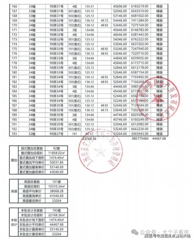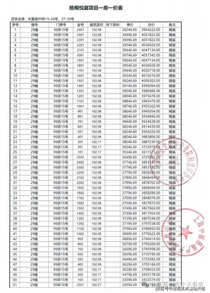 一房一价表