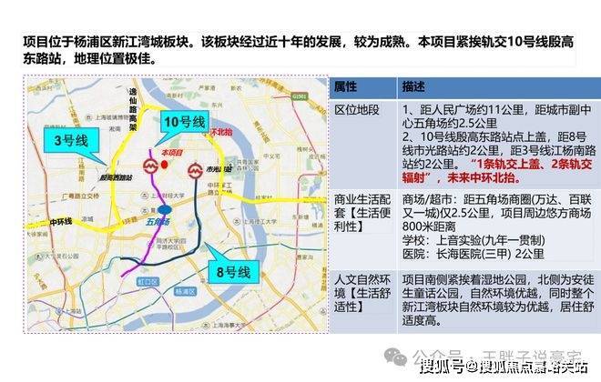 新江湾是上海传统豪宅区,毗邻五角场城市副中心,拥有9.45平方公里的原生湿地以及约15万㎡的新江湾湿地公园生态稀缺资源。信达泰禾·上海院子位于新江湾城核心位置,家门口就是10号线殷高东路站,步行可达。
