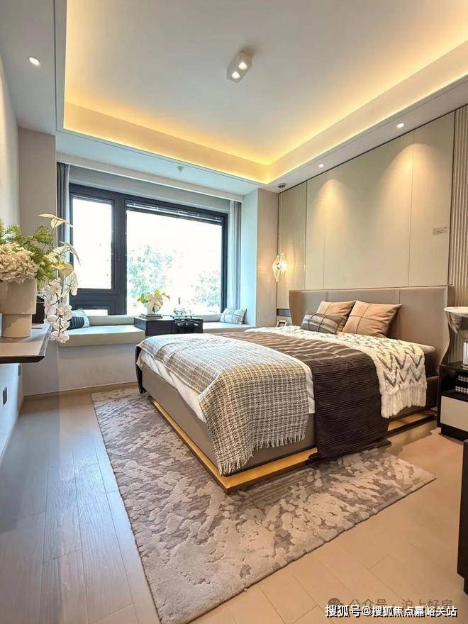 往南走去, 三开间均朝南,搭配 “4飘窗1阳台”的延伸设计,无论是采光、视野还是通风效果都达到了极致。 主卧的套房设计则进一步提升主人日常的舒适度与私密性!