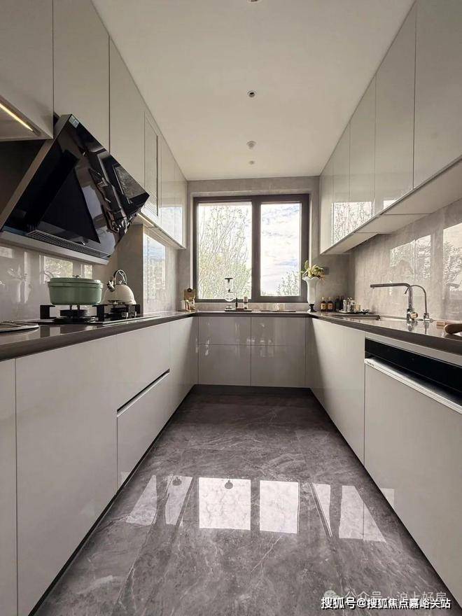 U型厨房:厨房采用 U型布局,并巧妙融入飘窗元素,拓宽视野同时增添休闲氛围。