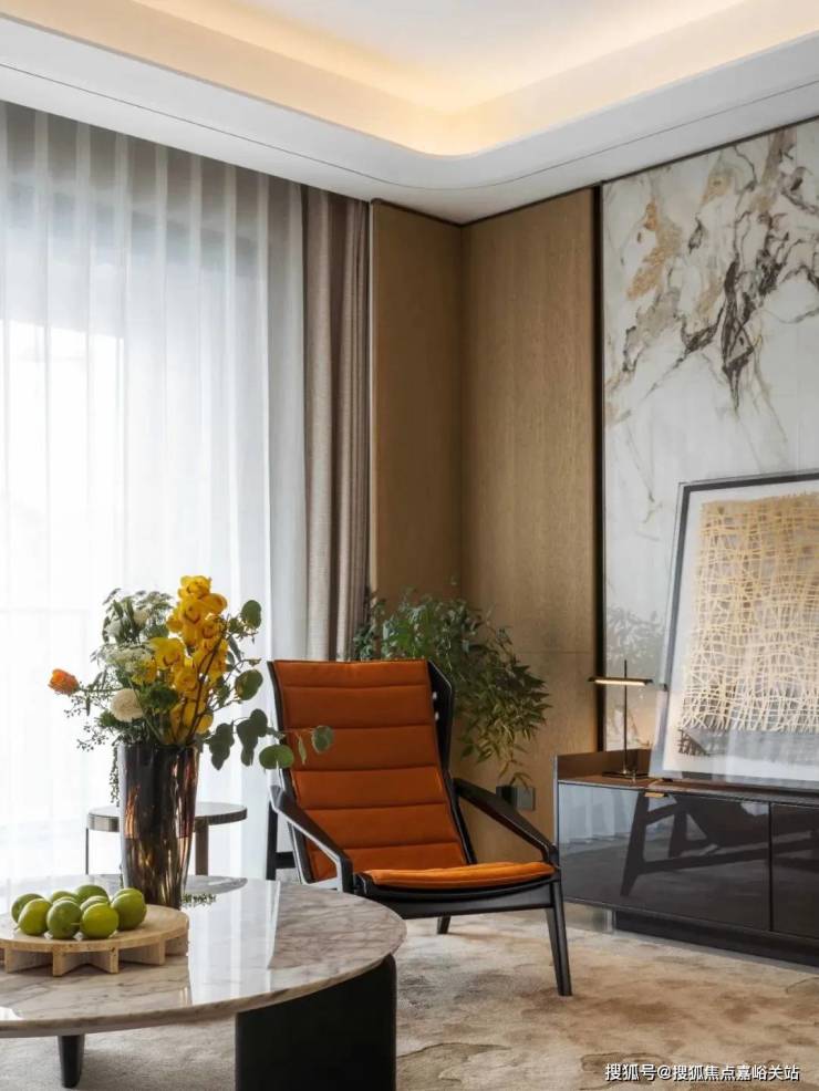 比如,缦云上海的主力层高为3.3米,比市面上的高端住宅高出20-40公分,再配上 客厅吊顶采用圆弧设计,让整体空间更圆润更温和,立体空间感更强,视觉上也更宽敞通透。