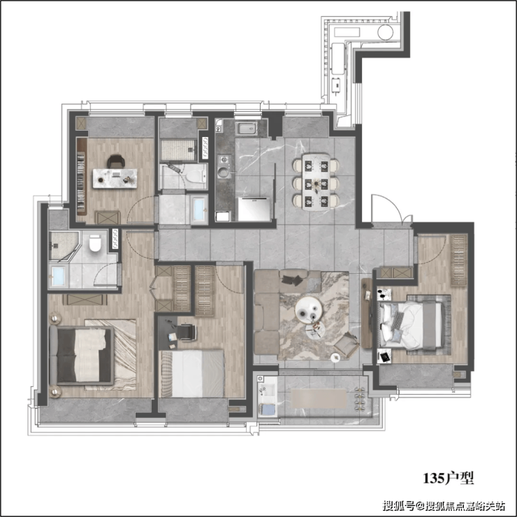 约135㎡ 样板房实拍: