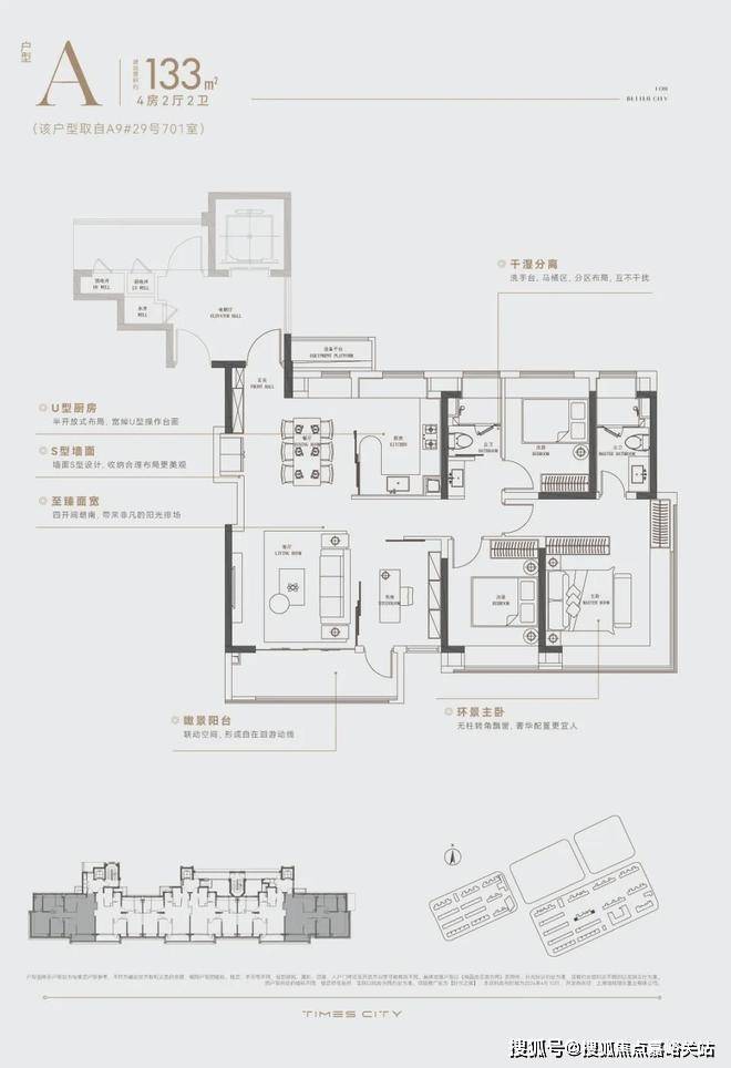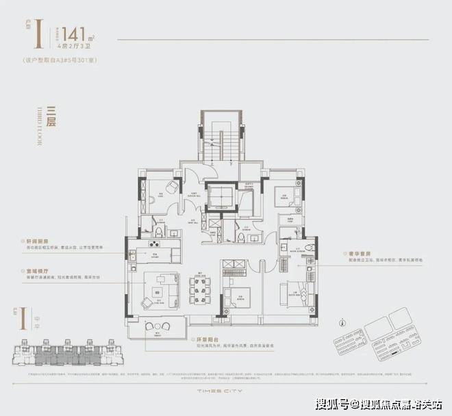 华润置地时代之城高层产品将百平上下的改善户型做出了轻奢级的居住体验,把约133㎡的改善四房做出了豪宅的尺度感。