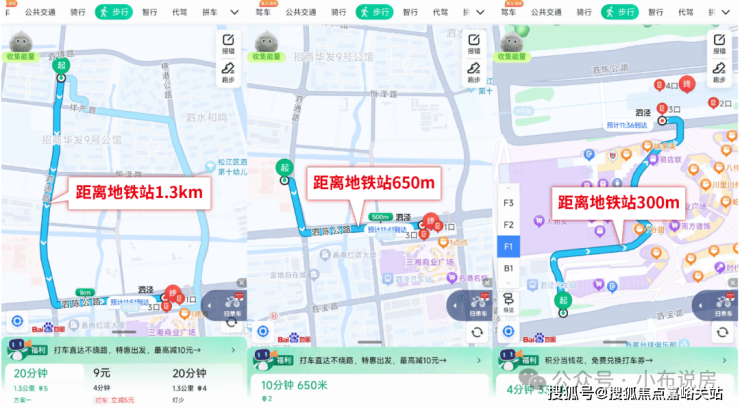 不同的距离步行到地铁站的差距有多少呢?来看百度地图的测距: