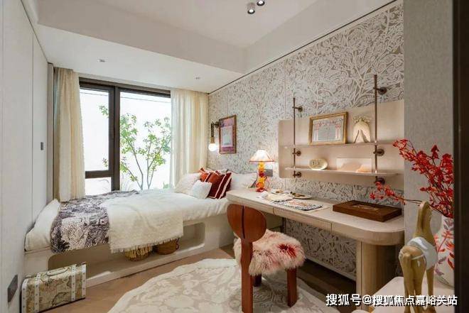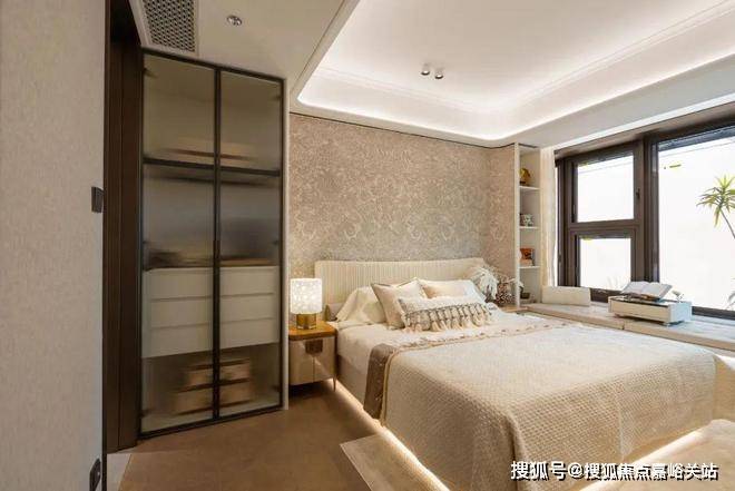 豪华的套房设计,北侧卫浴飘窗+南向床边双飘窗的设计,更是把这个空间的视野和收纳空间延展开来,尺度感真的很惊人。宝山淞南 中环之上