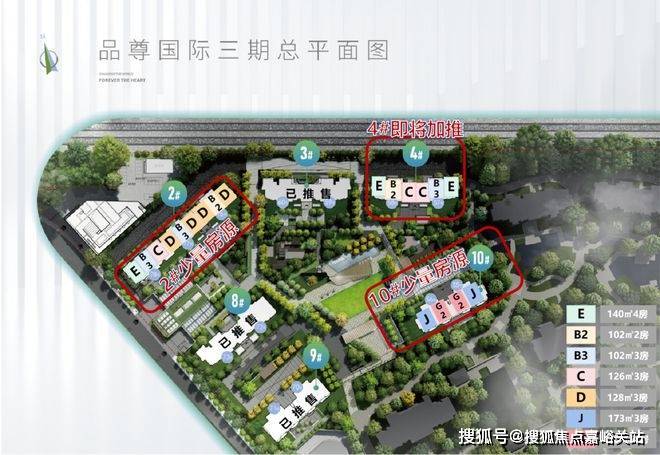 【品尊国际】三期共970户,产品是由6幢,总楼层为24-30层,其中2,3,4,8幢面积段是102-158㎡,9,10幢面积段是173-205㎡四-五房。均价109800元㎡。