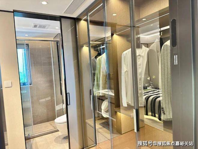 主卧套房设计,卫浴、衣帽间、主卧层层递进,卫浴还是全明设计,既有空间的尺度感,又有生活的舒适性。