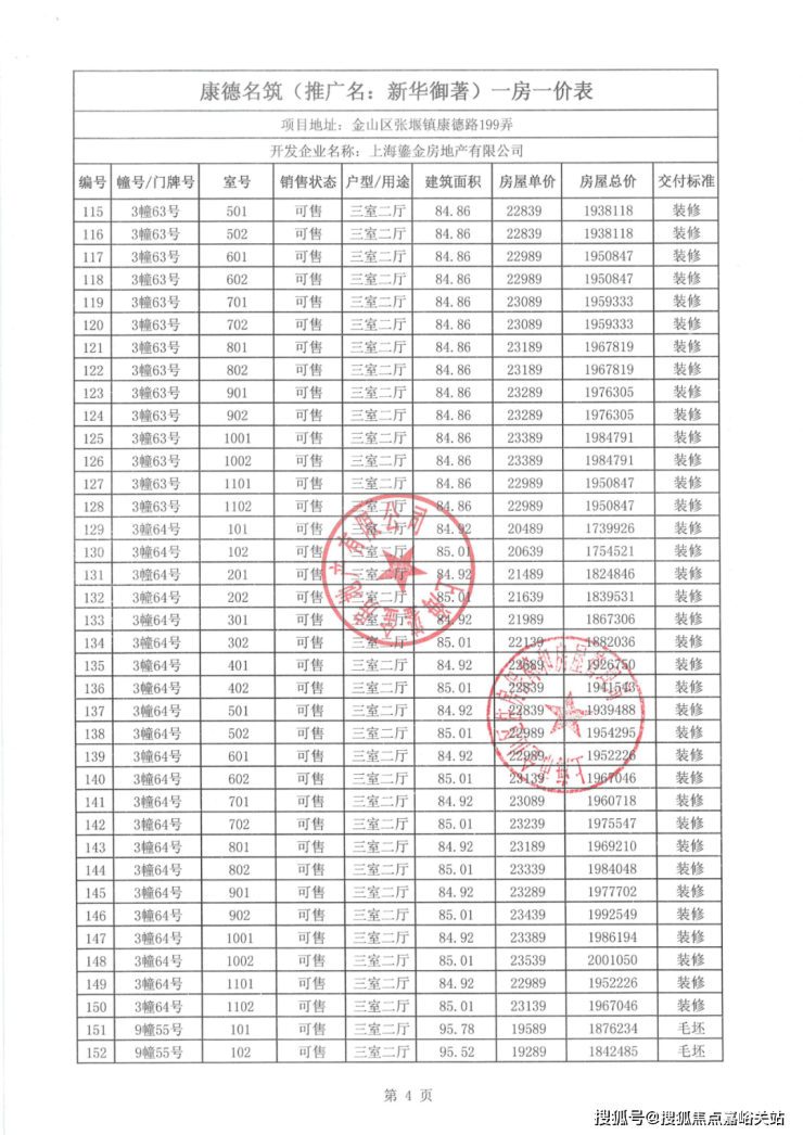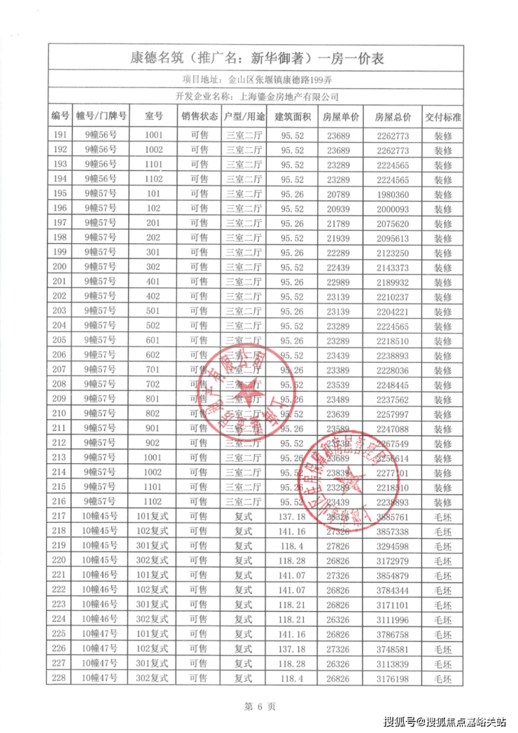 一房一价表如下: