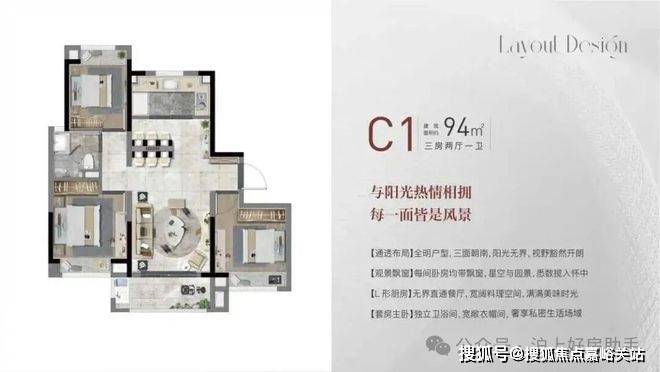 建面约94㎡3房2厅1卫,做到了三开间朝南+双卧室带飘窗+飞机户型,室内通透明亮;全屋通风。大名城映雨江南售楼处电话4008569058☑️☑️