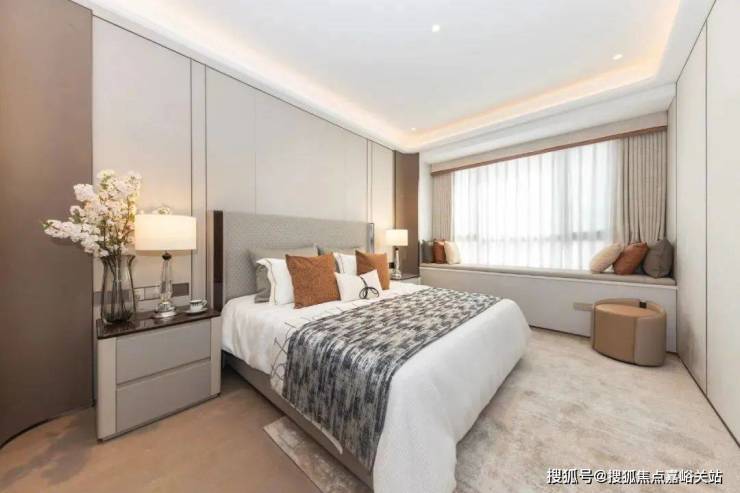 而到了卧室空间,灯光就显得更加温馨一点,更容易让人产生安全感,家的归属感拉满。