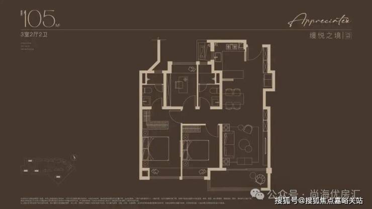 建面约105㎡3房户型,总价400万级即可上车!堪称同等总价段的改善天花板!三开间朝南,约9.6米大尺度南向面宽,最大程度揽光入室;客餐厅一体化 ,连接厨房和南向阳台,动线流畅,也是更大的欢乐聚场;创新研发S墙设计,预留冰箱专属位置,释放厨房使用空间 ;主卧套房设计,奢享独立卫浴和衣帽间,尽享尊崇。